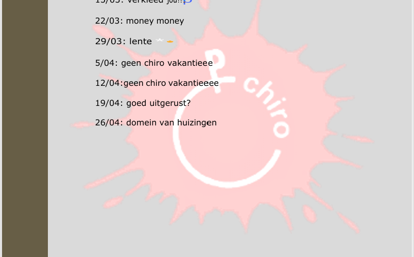 Het Chirojaar vliegt vooruit, en ook in maart en april staat er weer heel wat op de planning! Om jullie goed op de hoogte te houden, geven we graag wat extra informatie.